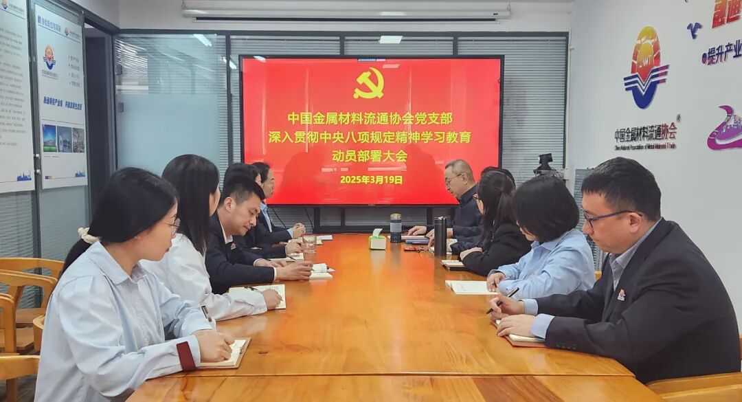 3月19日上午,中国金属材料流通协会党支部“深入贯彻中央八项规定精神学习教育动员部署大会”在北京总部举办,全体党员和积极分子参加了活动。