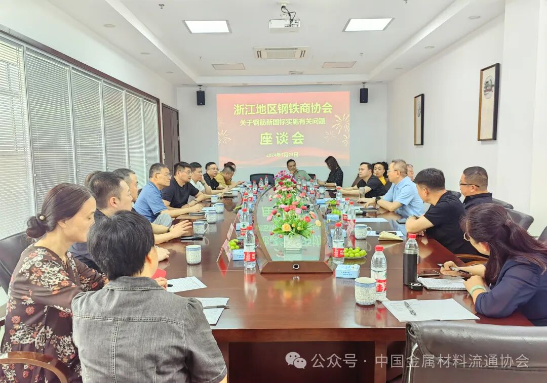 7月23日上午,中国金属材料流通协会执行会长兼秘书长陈雷鸣受有关部门的委托,赴杭州开展钢铁市场调研活动,并应邀出席“浙江地区钢铁商协会关于钢筋新国标实施问题座谈会”。杭州钢铁贸易行业协会、宁波钢铁协会、宁波钢铁行业协会、金华钢材行业协会、丽水金属协会、温州市金属行业协会、台州市金属材料流通行业协会及相关企业代表参加了会议。