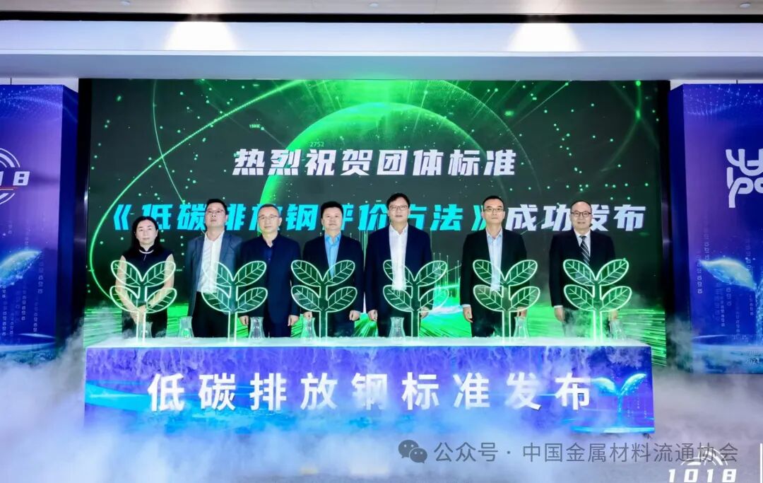 10月18日上午,由中国钢铁工业协会、上海市发改委、上海市商务局和宝山区人民政府指导,中国宝武钢铁集团有限公司主办,欧冶云商股份有限公司承办,中国金属材料流通协会、上海期货交易所等单位联合主办的“2024绿色发展数智供应链大会”在上海宝山宾馆隆重举行。来自政府有关部门、行业协会、宝武集团合作伙伴和钢铁上中下游供应链企业负责人出席了大会。中国金属材料流通协会执行会长兼秘书长陈雷鸣应邀出席大会,并出席了团体标准《低碳排放钢评价方法》的发布仪式。出席发布仪式的嘉宾还有中国钢铁工业协会党委副书记、副会长兼秘书长姜维,宝武集团副总经理费鹏,欧冶云商董事长吕军,中远海发副总经理俞震,宝钢股份中央研究院首席刘颖昊等。