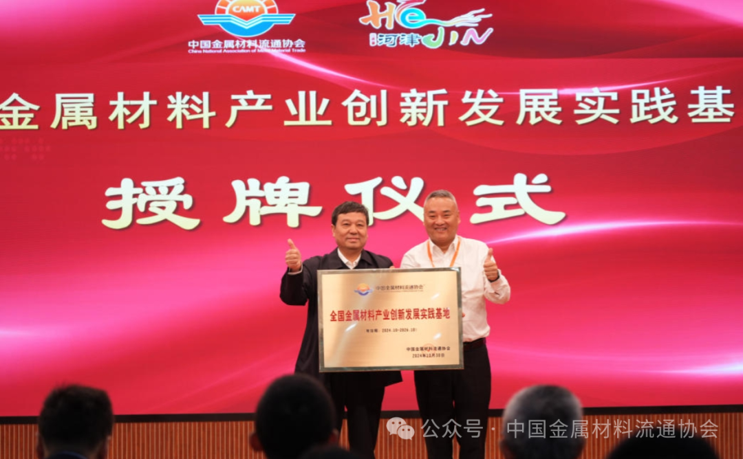 为帮助河津市打造金属材料创新产业集群,中国金属材料流通协会授予河津市“全国金属材料产业创新发展实践基地”称号。李刚代表中金协向河津市授牌,李民富代表河津市政府、河津经济技术开发区上台接受授牌。