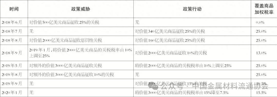 北京时间11月10日,根据多家主流美媒最新计票情况测算,特朗普赢下最后一个“摇摆州”亚利桑那州,最终拿到538张选举人票中的312张,在2024年总统选举中获胜。早在竞选过程中,特朗普就曾表态,如果当选,将对进口商品加征关税,尤其是对中国商品的加征幅度高达60%,一度引发市场对后续出口情况的担忧。如今美国大选落地,特朗普政府或将加大对华的关税制裁力度,或将对国内钢材出口造成一定程度的冲击。回顾2017年—2021年,特朗普在首个总统任期内,对中国实施了以“贸易战”为核心的多方位、敌对性、打压性的经贸政策,对我国出口、生产和科技发展均造成了较为明显的影响。2023年以来,特朗普已在多个不同场合表明了他再度当选后的施政方针及对中国的经贸政策,显示其仍将延续在“美国优先”战略框架下“单边主义”和“重商主义”的政策风格,并将全方位大幅升级对中国经贸的打压措施。公开资料显示,特朗普在首个总统任期对华关税政策的主要进程如下:2017年4月—2018年3月,美国贸易代表办公室(USTR)先后通过2017年度“特别301报告”将中国纳入“优先观察清单”、对中国发起“301调查”、发布调查报告认定中国贸易政策“不公平”,为特朗普出台对华打压性贸易措施提供依据并构建法律基础。2018年6月—2019年12月,特朗普政府对华施加了威胁与行动并存的大范围关税政策。其中,主要行动有5轮,对中国共计5500亿美元的商品征收了关税(如表)。